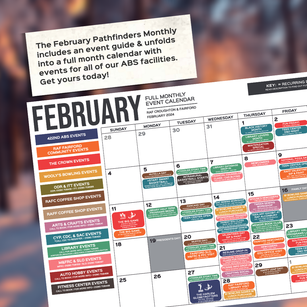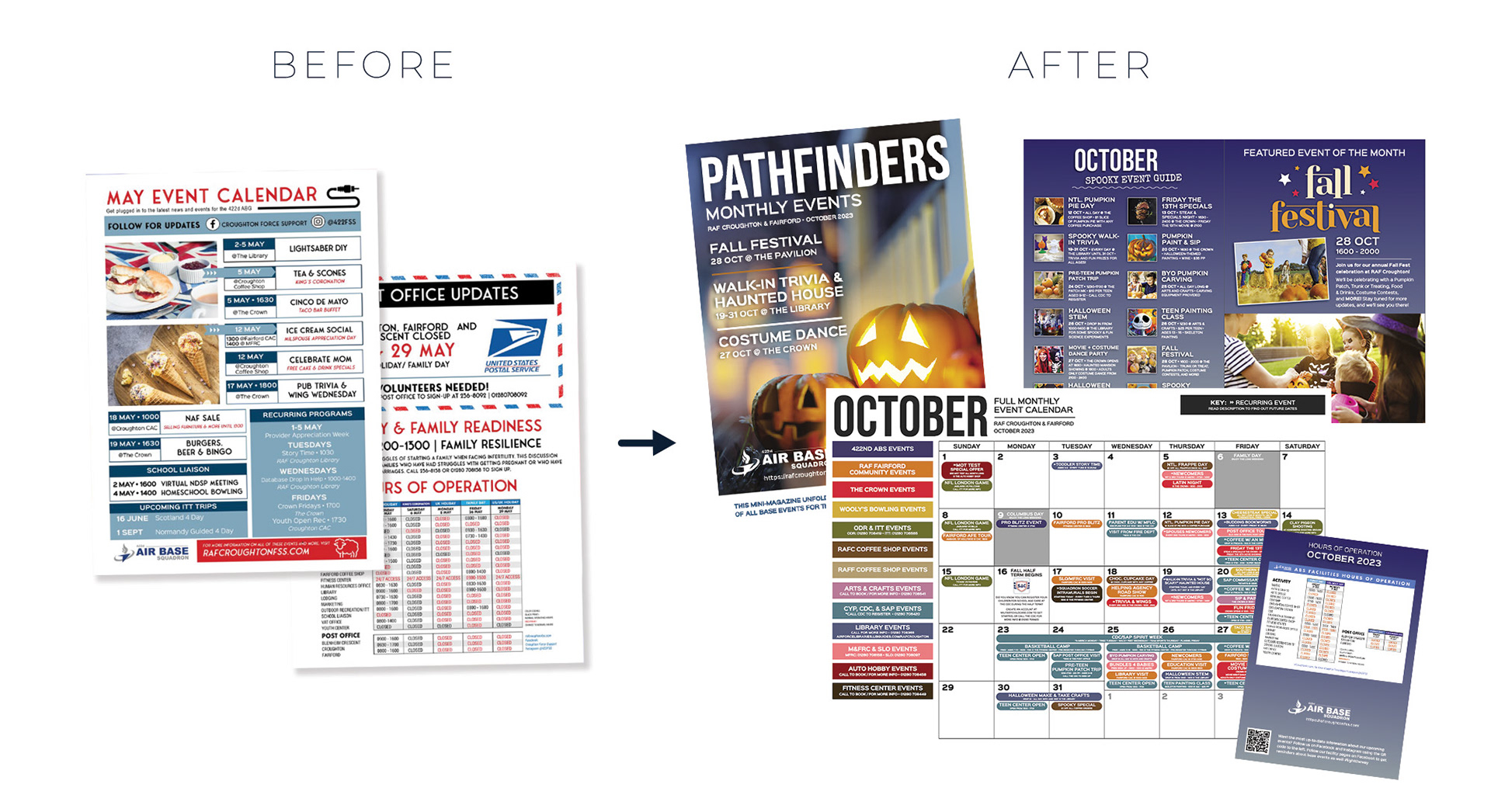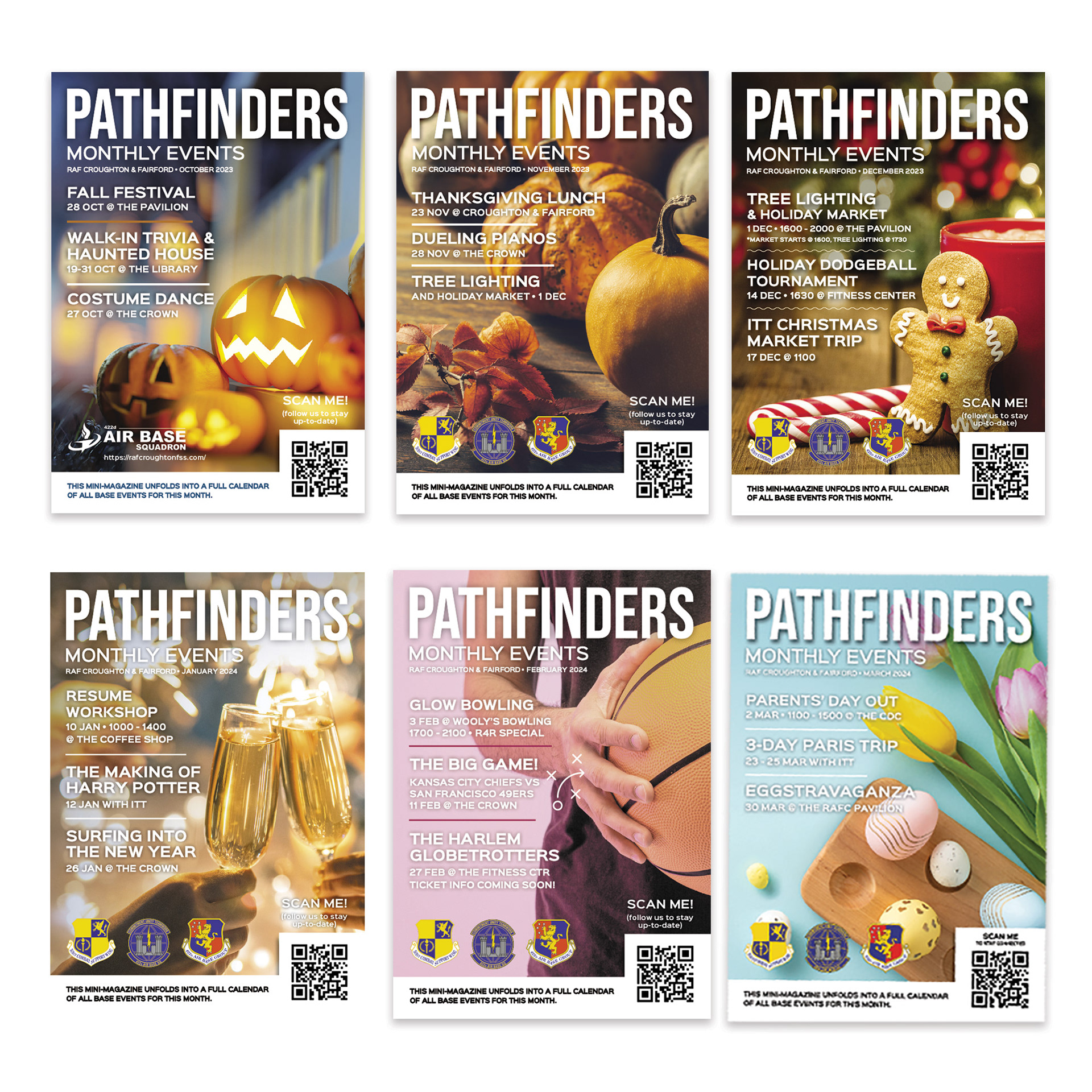 Before the Pathfinder Monthly, we had a double sided sheet of paper that only could feature a select amount of events - not all base events. There was no system in place for the Marketing team to receive events from facilities either, so we implemented a monthly marketing meeting where each facility gave us their events two months in advance.