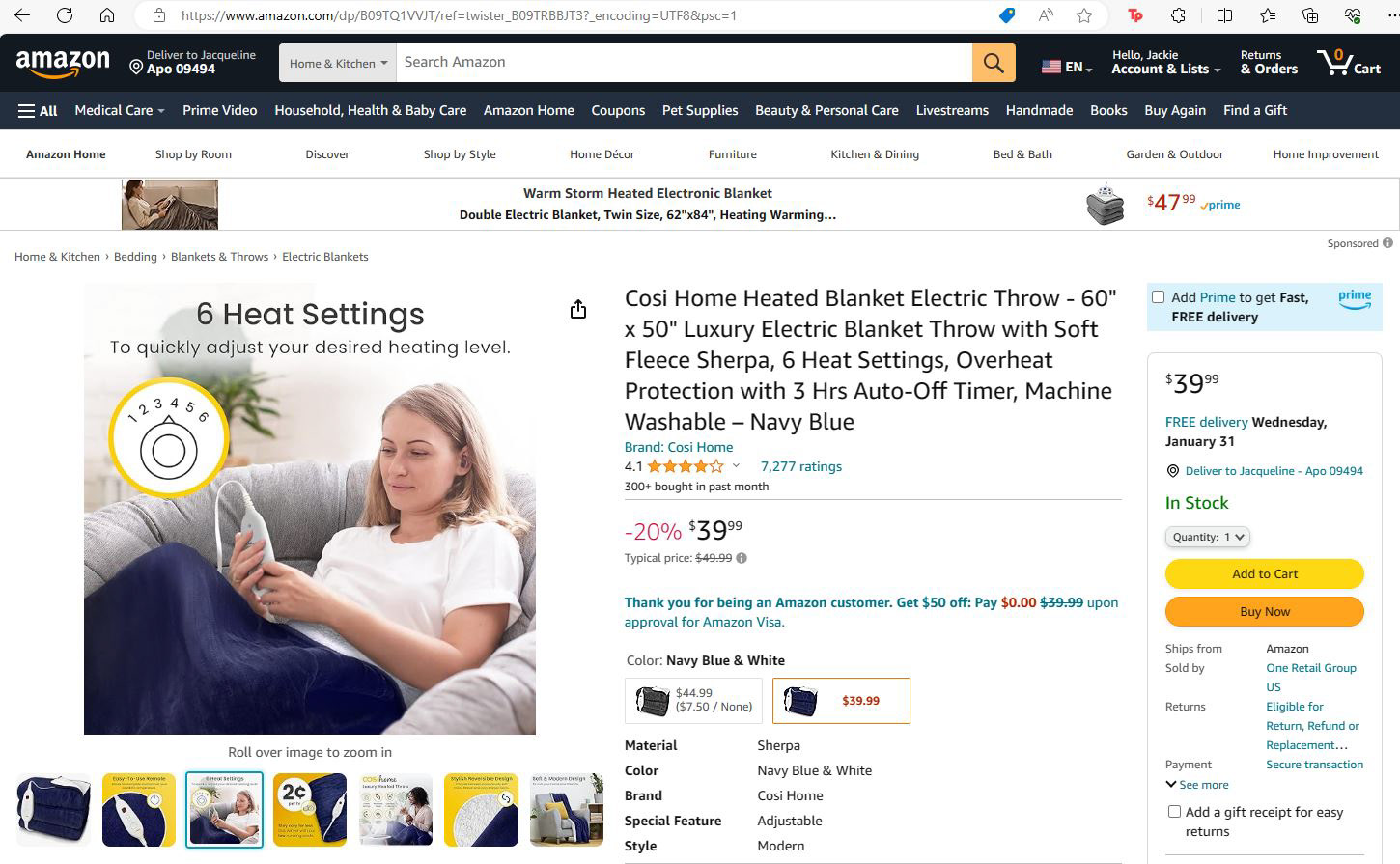 Creating images that brought focus to the heated blanket's vibrant color was also so important to this listing! As it was being sold in three different colors, we wanted that to be the main focus. So to achieve this, we used white and washed out backgrounds primarily.