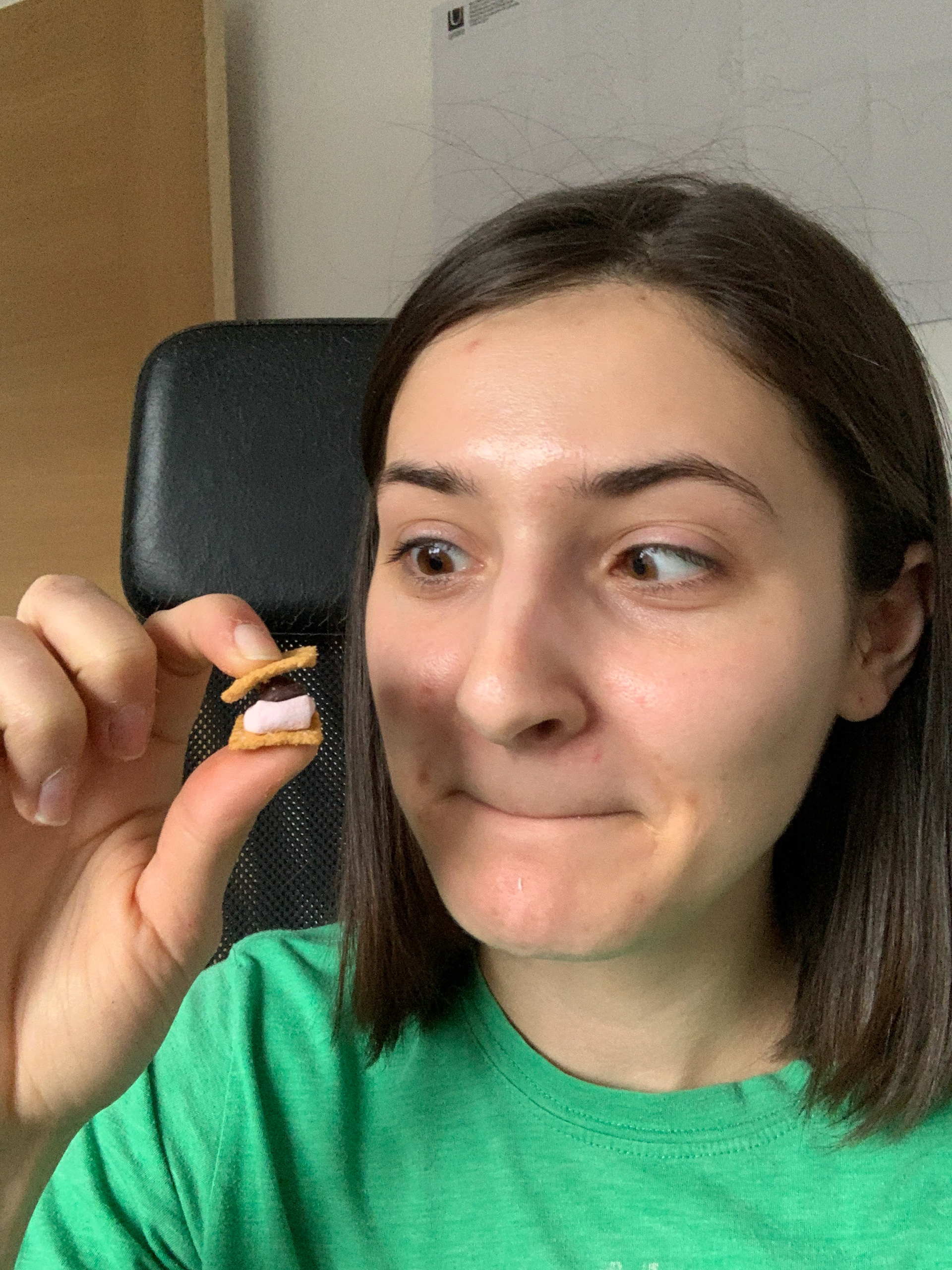 - A bag of mini marshmallows, mini "Graham Crackers" (Golden Grahams), and chocolate chips